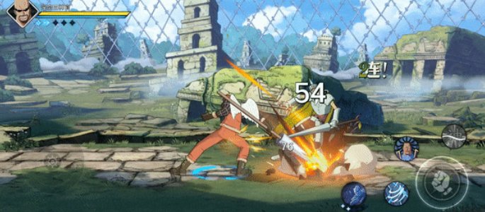二技能方面阿悟会召唤一个带有随机效果的惊奇云出场,修罗会用火之矛攻击,欧姆会用铁云攻击,涅槃则是用喷风贝进行加速,期间可以闪避飞行道具,最后的奥义技方面所有角色同样会进入到动画中,然后4人轮流上场对敌人进行打击。