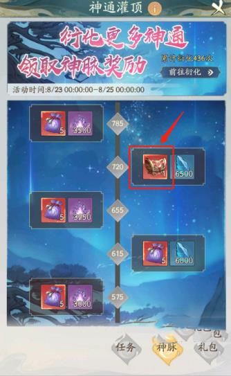1、第六天新活动“神通灌顶”期间完成指定的任务会获得天衍符奖励,而且在活动期间会记录玩家衍化神通的次数