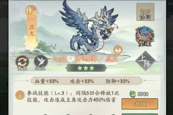 特别强势,连击、暴击、反击暴击都需要带它,不但增加主角的暴击,在战斗中还可增加50%的暴击,存8000御灵石等待轮回殿活动拿自选神兽,自选神兽选择应龙。