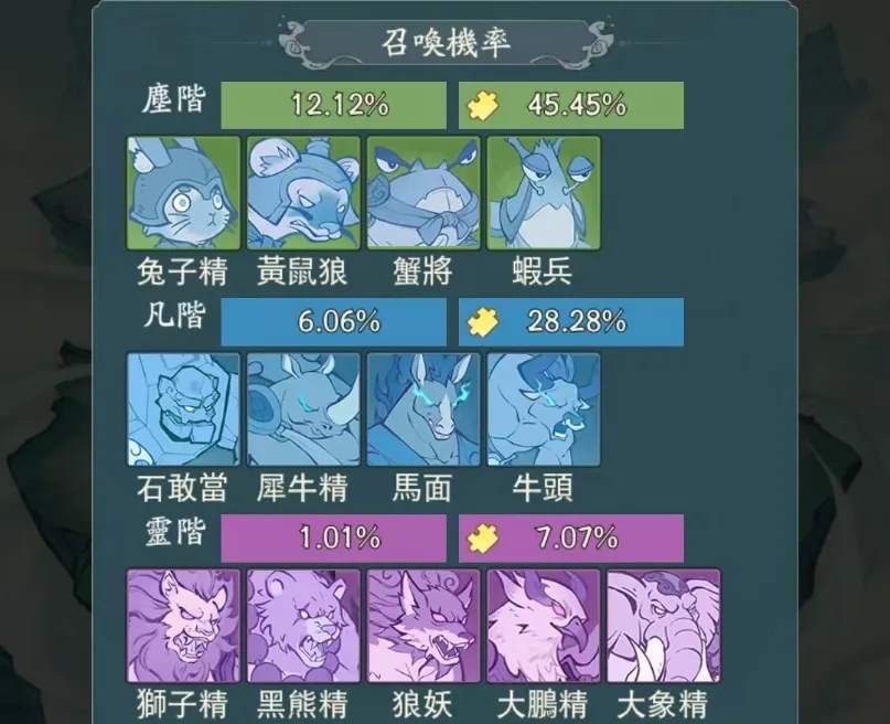 法象合成:任意5个低阶法象可以合成1个高阶随机法象,这是精怪玄诀神通等不具备的功能,也就是说只要低阶法象够多,那么合成神阶法象也不是不可能的!
