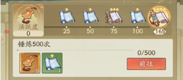 每日任务:活动持续期间有每日任务5个,做完可获得5个1星绘卷,每个任务额外给与5活跃度!活跃度以周为单位,每周重置!活跃度达到165满级,可获取1星绘卷3个,3星绘卷1个,4星绘卷1个!