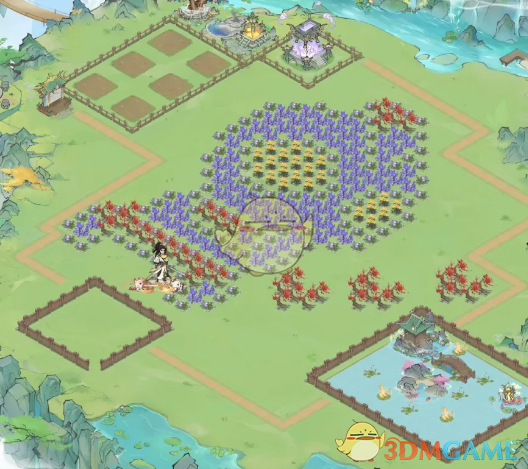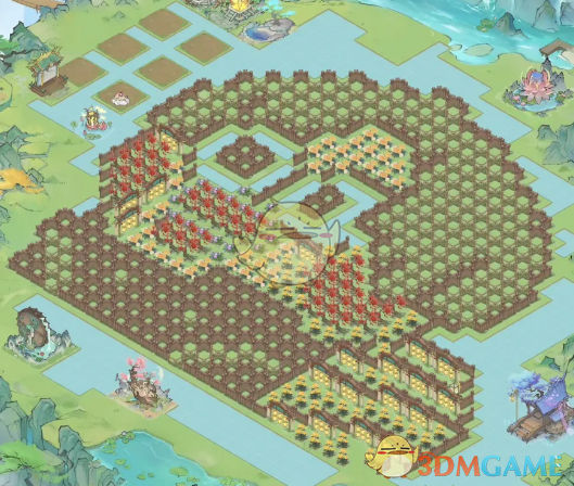 这里采用了鲜花组成的Q版奥特曼,发出3个由树组成的爱心,非常的可爱。将灵田等收益性道具放在边上方便收取。实现好看与实用集合一体。就一句话你相信光吗!