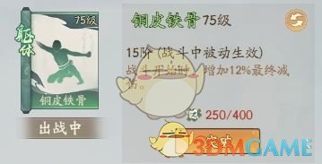 铜皮铁骨:战斗开始时,增加12%最终减伤。