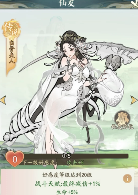全新仙友—白骨夫人来临。集齐50个信物即可结识,结识后增加最终减伤效果和生命加成。