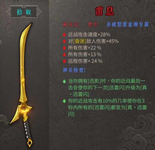 ·你的近战攻击有10%的几率使你在3秒内所有的[迅雷闪]都变为[真·迅雷闪]