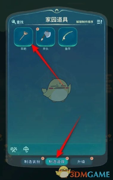 答:在魔方制造机内找到草耙,消耗木材进行制作即可。