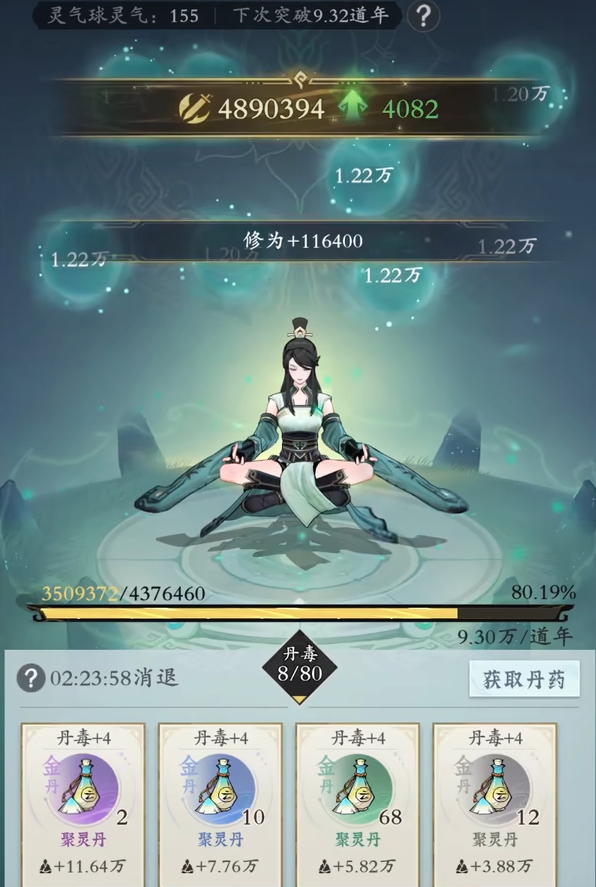 想要提升修为可通过使用丹药来实现,只是丹药除了能增长角色的修为外,还会有额外的丹毒效果。目前角色的丹毒上限为80,不同品质的丹药在服用后所增加的丹毒都是一样的,而且只要丹毒到达80的灵界点,那么玩家将无法再使用丹药来获取修为的增长,既大伙不能用猛吃丹药的手段来快速破境。