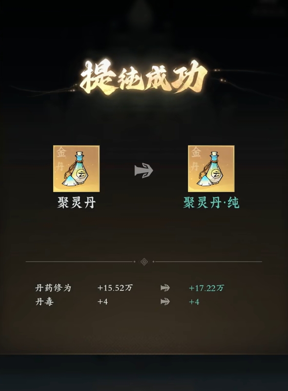 为此,人们需对每天服用的丹药有一个明确的规划,即只用蓝色品质以上的丹药,毕竟蓝色品质以上的丹药加的修为多,这样在自己服用同样数量丹药时,所获得的修为就会更高,效果远比服用蓝色品质以下的丹药好。在进行丹药提纯时也是一样,只提纯高品质的丹药。