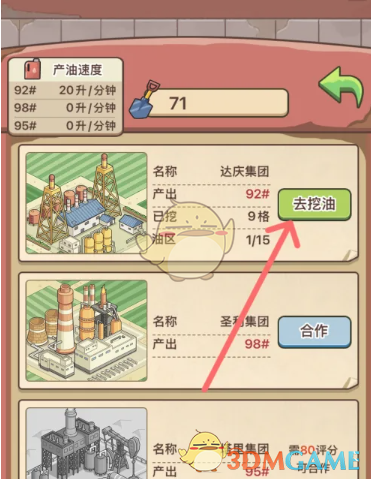 答:游戏主界面点击右下角去挖油选择区域进行开采即可。