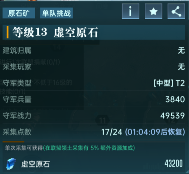 每种类型每个等级的矿点需要完成首次挑战才能进行采集,采集可以用不同的队伍,可连续采集,矿点挑战需要注意克制关系和阵容配置: