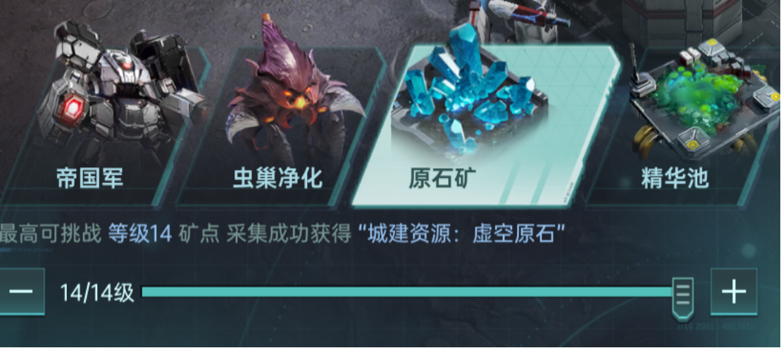 采集之后可获得【虚空原石】、【暗质精华】等城建资源。