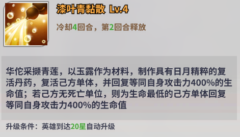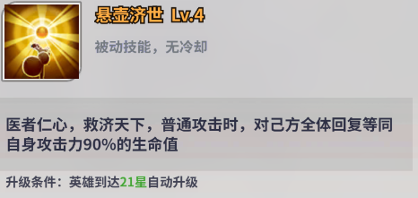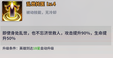 无双神将英雄【华佗】是冒险旅途中一名强而有力的战将。与【蔡文姬】定位相似,属于辅助与治疗双修的英雄。技能可以为部分己方单位恢复生命的同时提供增伤效果。但是比起增伤效果,华佗的群体治疗能力与特有的复活能力更为出众,面对高压敌人时,华佗也是一张有效的对策解。