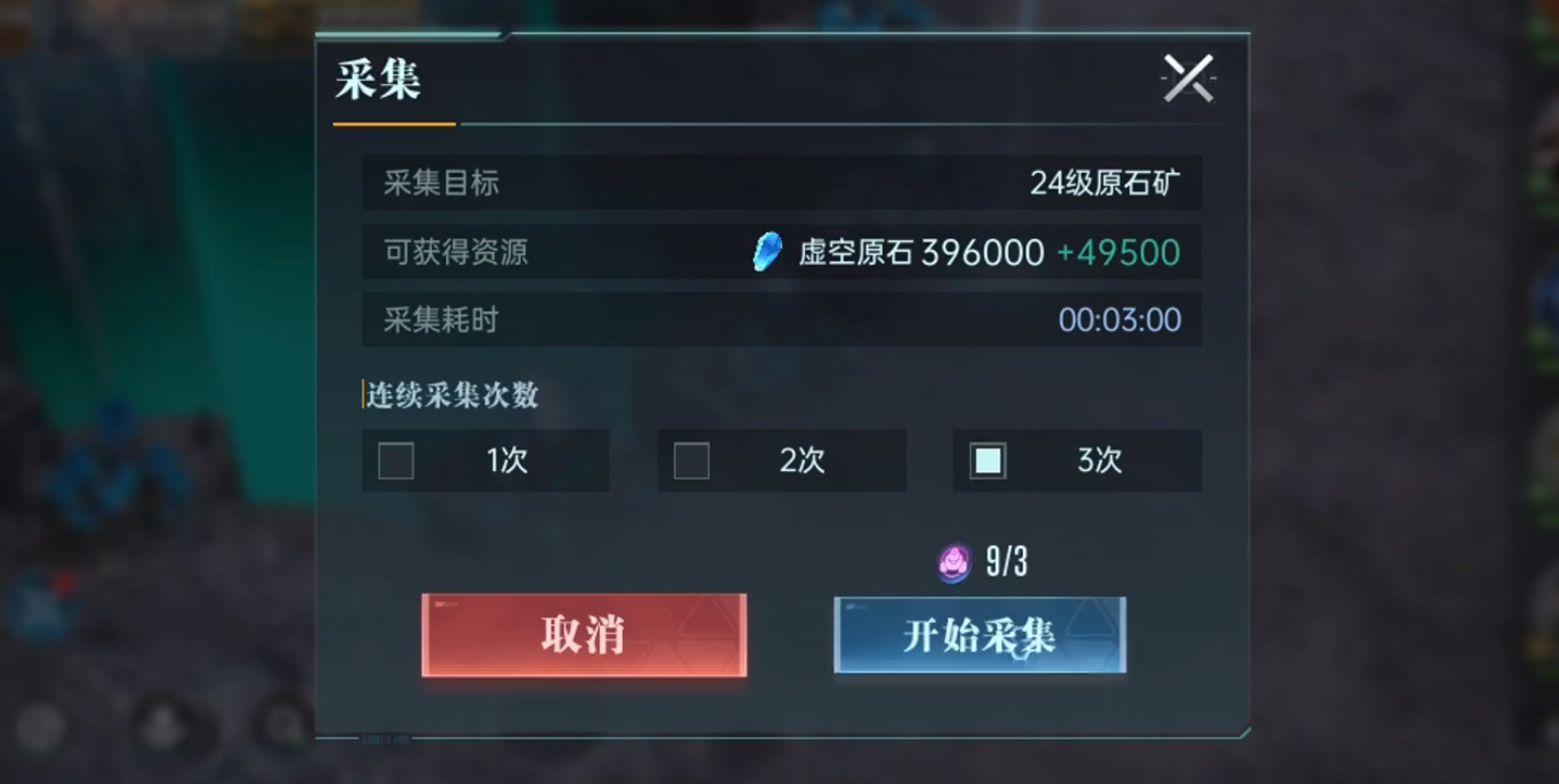 当所有准备工作做好之后就可以开启采矿了,需要注意的是每次的采集时间是固定的,每次都是5分钟。玩家可以通过购买月卡的方式来加速采集,买月卡之后可以减少80%的采集耗时。第二点就是每次的采集都需要消耗1点的采集点数,采集点数则是每2个小时恢复1点。