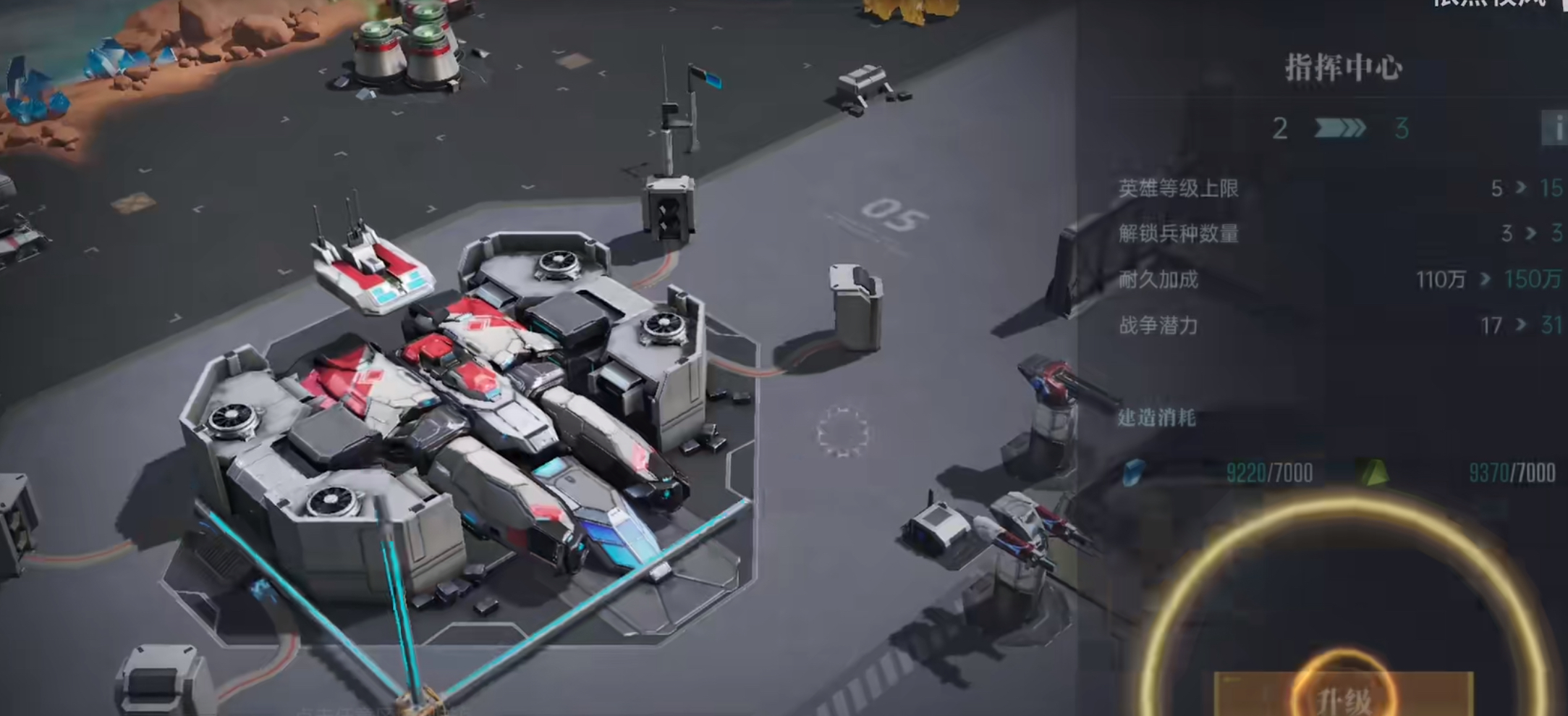 第四个就是指挥中心,这个是整个基地的核心,当指挥中心升级之后,英雄等级上限也会提升,可以解锁更多的特殊兵种和建筑,所以大家一定要重视哦!