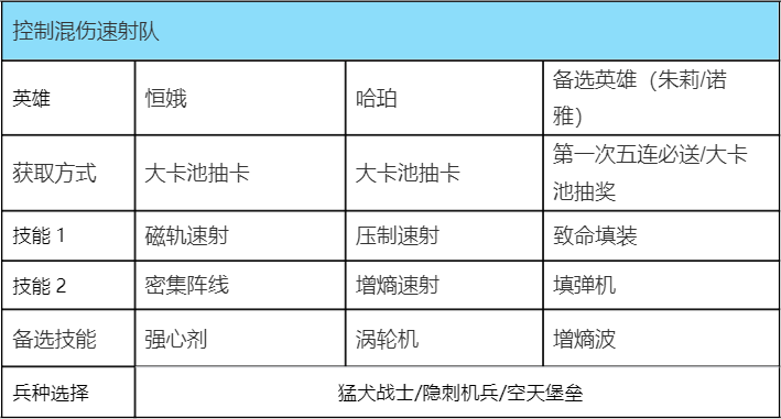 推荐选择猛犬战士/隐刺机兵兵种,后面指挥中心升到十七级可以换成空天堡垒兵种,伤害会有很大的提升,此兵种有舰船模式,打BOOS和打城开舰船模式(该模式不能移动,需要选择在安全的地方开启),打矿和PVP选择普通模式;这套阵容唯一的缺点就是前期需要大量的抽卡资源,恒娥和哈珀都不是很好出。