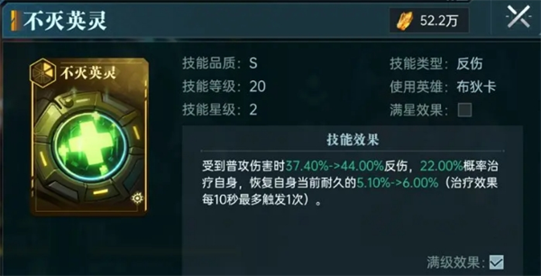 布狄卡的技能【不灭英灵】+【供养仪】则为整个阵容提供稳定回血。【不灭英灵】在受到攻击时概率为自身恢复6%当前耐久和40%反伤伤害,【供养仪】则稳定每10秒恢复4%的当前耐久,在没有奶的情况下依靠自身坦度也能抗住,也是整支队伍开矿强力的资本。