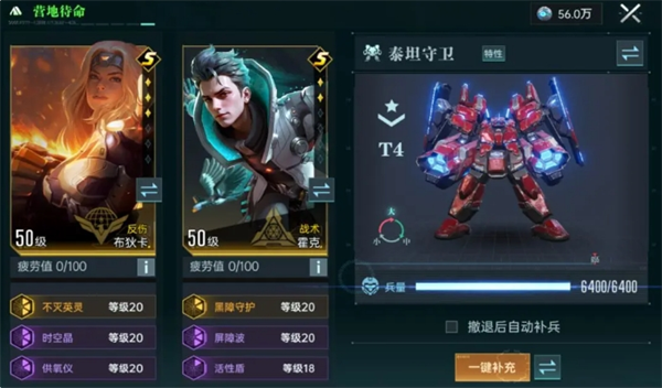 兵种的选择方面没有太多可说的,选择耐久度最高的泰坦守卫。切换为防御形态之后进一步提升正面防御能力,让队伍在抗伤的同时打出不俗的伤害。