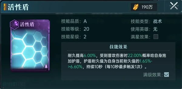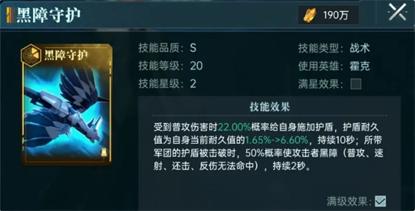 霍克本身的技能【黑翼守护】可以概率给自身提供护盾,同时破盾时有50%的概率让敌方进入黑障状态,所有攻击都无法命中。再加上【活性盾】的技能效果,可以稳定生成护盾。