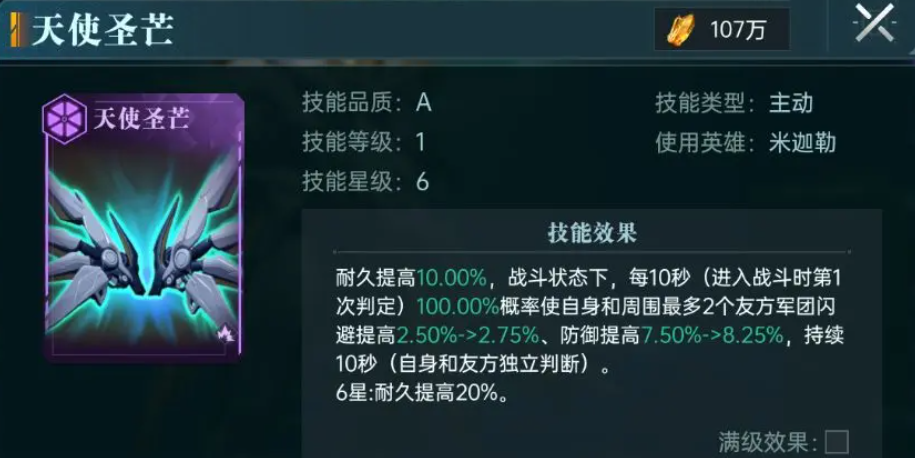 在该游戏当中,米迦勒作为辅助类型的英雄,他能够提供战斗属性的加成,不过他却不能够直接治疗。由于他具备天使圣芒这个核心的技能不仅能够有效地提高自身的耐久性,也能够给团队起到闪避跟防御等等特性。