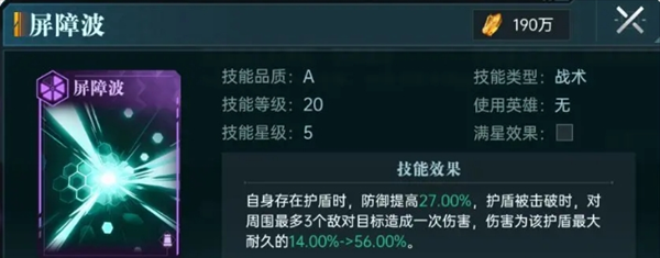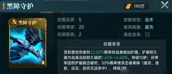 后续在操作的过程中,可以利用护盾最大耐久的百分比来对敌人造成伤害。这个角色就算没有升阶,他的技能也是非常强大的,最大的耐久值都有40%的伤害,再加上霍克的技能,黑翼守护这个技能可以给自己增加护盾,并且还有50%的概率可以让敌人进入黑障的状态,保障对方所有的攻击都无法命中,同时加上活性盾的技能,帮助自己更好的稳定生产护盾。