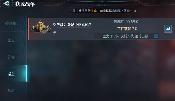 如果只不过是打算攻打效能中枢站这样的小城,那么就没有什么太多的操作难度。可如果准备攻打控制枢纽,相对来说就比较复杂,稍微一个不注意就有可能会出问题。在攻打时就需要注重于破解的环节,在破解之后就需要将主城直接迁过去。整个破解的过程中时间相对比较长,这里就有一个小技巧。