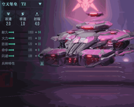 空天堡垒:攻击的距离是比较远的,并且还会拥有较高的单次攻击,可以一下子攻击三个不一样的目标,但是没有办法去移动,主要是作用于远程支援。