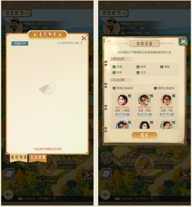 当公会的深度玩家能力已经远超委托任务的品质时,及时将协助设置调整好,如远超普通的任务能力要求,就将普通取消掉,这样可以防止公会成员误拉你进入普通任务,浪费次数。留住更多次数协助能接取更高品质的队友。