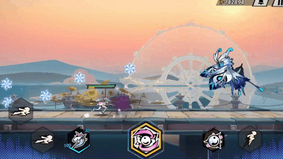 接着会迎来破茧,出来后变成绿色的蝴蝶,攻击也不一样,出现俩条蓝色的水龙一样从后方向你袭来,中间有个交会的地方,出现了我们就往上跳跃,攻击结束后会立马对我们进行俯冲,最好是向上跳不要硬攻,再次破茧是冬季,出现大片雪花和冲击波,雪花靠抗,冲击波看好距离躲避,最后变成金色开启一波狂暴,各种技能循环出现,所有躲避都是弹跳的最上方,躲过去就好了
