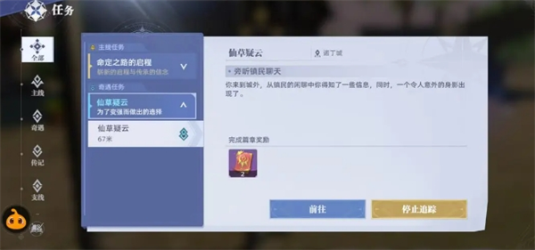 2、大陆纪行有一些奇遇任务,可以在地图上标记蓝色问号的地方探索触发奇遇任务,体验更丰富的剧情,获取更多惊喜奖励