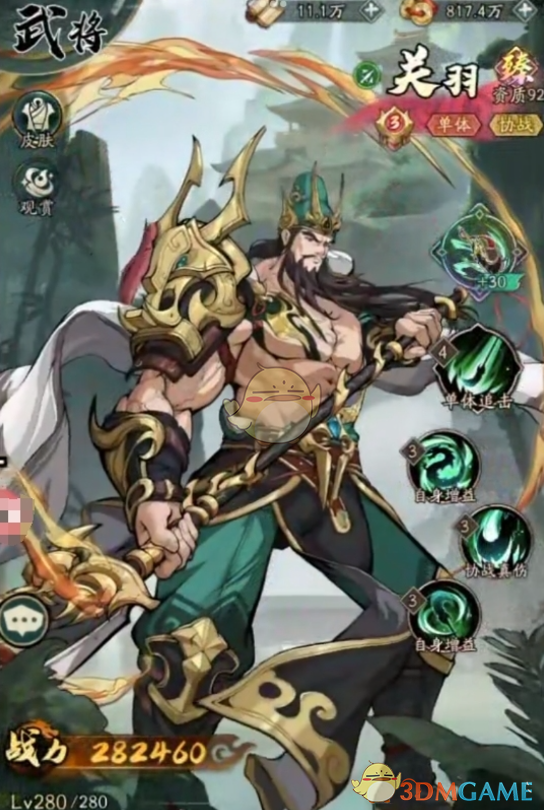 关羽的追击和协战能够让他在队伍中频繁打出伤害,自带真伤属性,对敌方角色的威胁非常大。