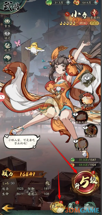 答:在武将详情页,点击右下角的升级。