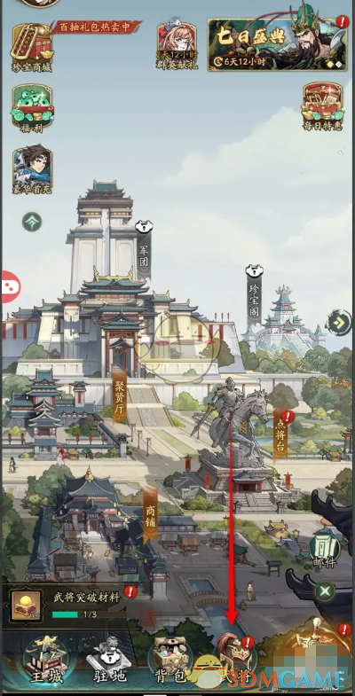 1、首先我们需要进入到游戏主界面,点击左下角的主城,再选择武将进入武将页面。