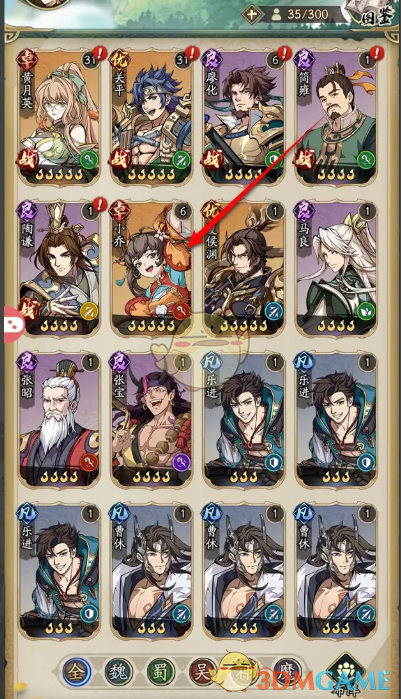 2、在武将图鉴页面,选择一个想要进阶的武将。