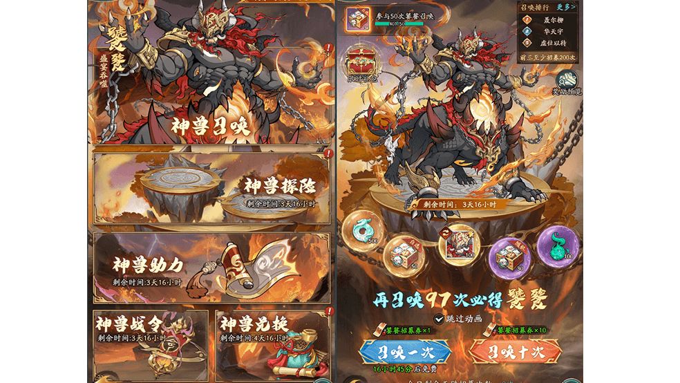 1、「神兽召唤」限定卡池——无双神兽限时招募!