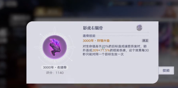在游戏中魂骨的种类比较多,往往都是按照难度等级来掉落。大家可以看到这里还有地域级别以及炼狱级别级别越高,所获得的魂骨品质也就越高。大家可以选择挑战高级别,然后获得影虎右腿骨这是一个拥有强势技能的魂骨,尽管有触发间隔限制,但是在实际挑战的过程中也会拥有比较出色的优势。这里就需要告诉大家,玩家所想要获取的古月魂骨也在这里。