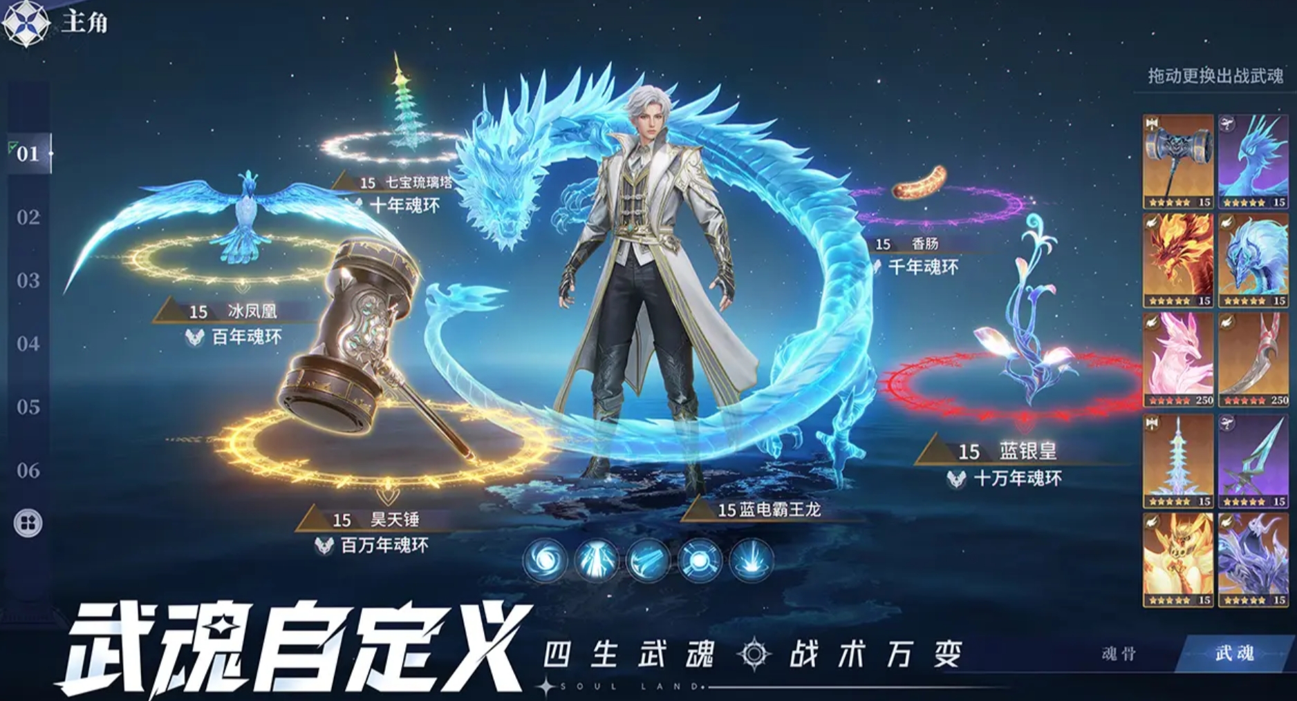 蓝电霸王龙作为主要的武魂,技能多为雷电属性,比如雷皇霸域,可以给敌人们造成大量的伤害,并带来持续的感电伤害。蓝电霸王龙的技能配招推荐:神龙摆尾+雷皇霸域+雷霆龙爪。战斗过程中可以先用雷皇霸域展开范围攻击,再用神龙摆尾加剧群体伤害和感电伤害,最后再连接上雷霆龙爪这个高伤害技能。
