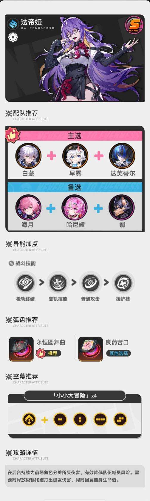 异环法帝娅装备搭配配队推荐 异环法帝娅角色培养攻略分享