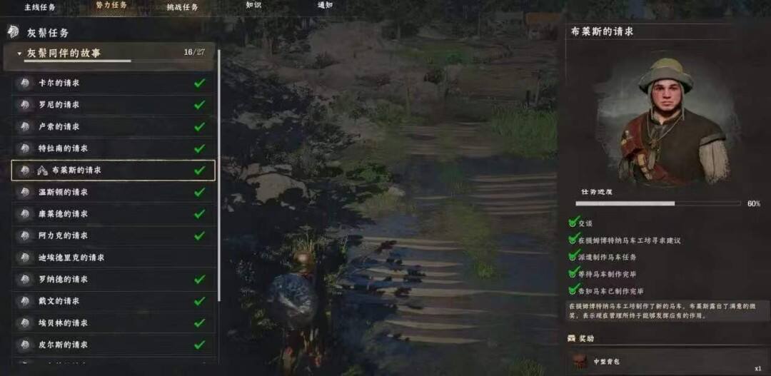 首先确认灰鬃同伴已寻回布莱斯,并且完成布莱斯的请求任务 制造贸易马车。