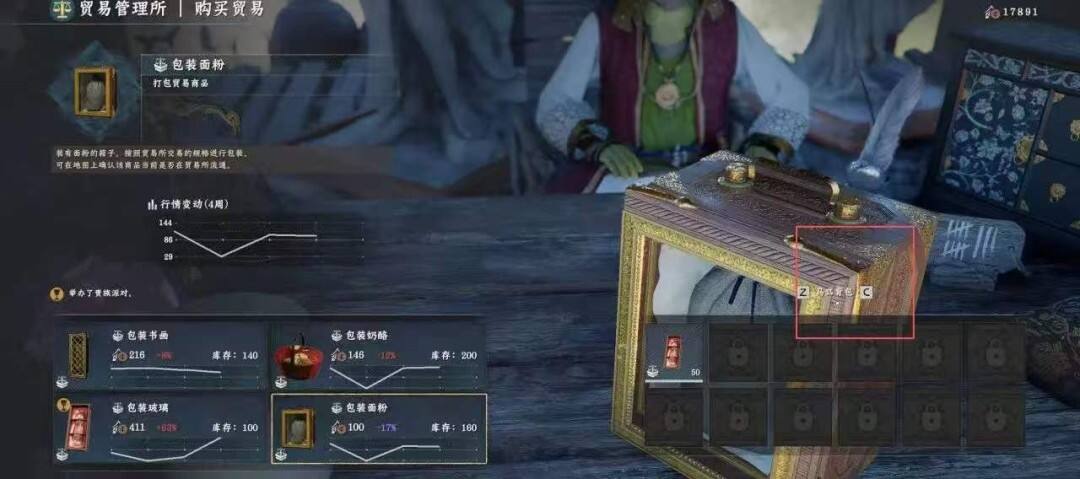 商品来源三种:日常探索 各大商会 村庄贸易所购买 于物资管理处打包。
