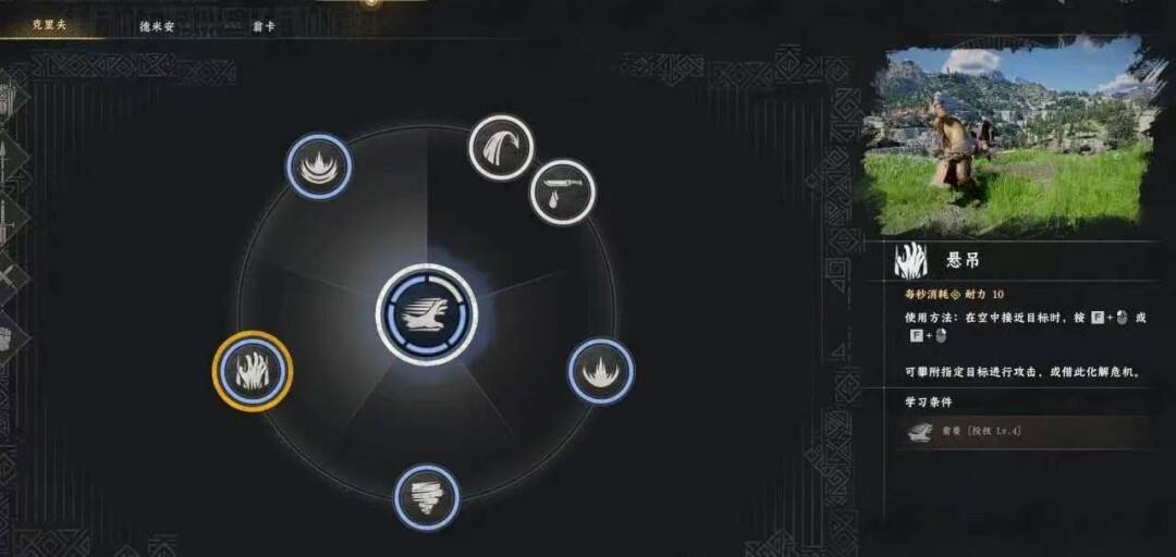 ⑧攀附在狼身上连续刺击 6 次,准备好攻击力最低的匕首,学会悬吊技能。