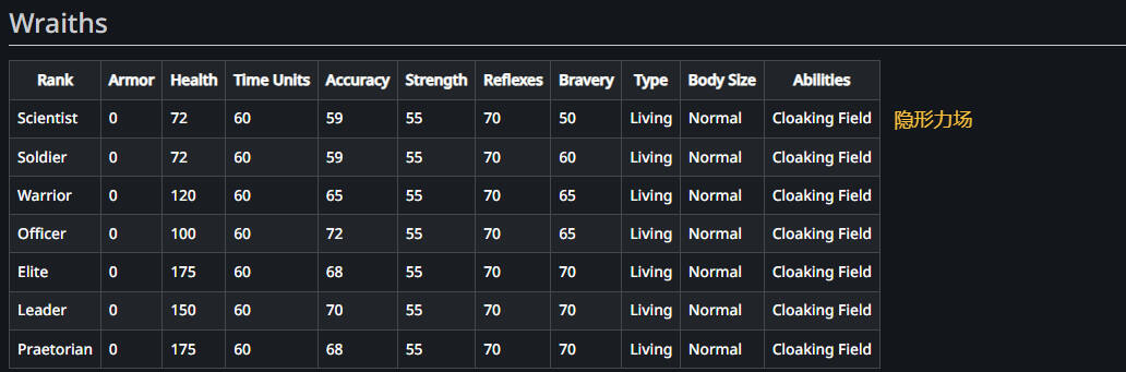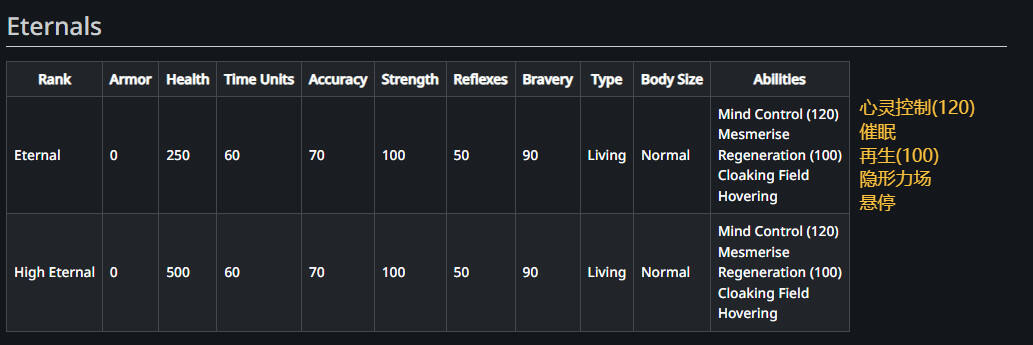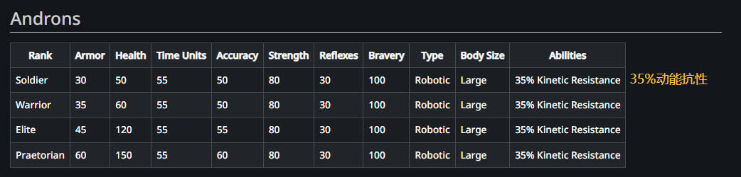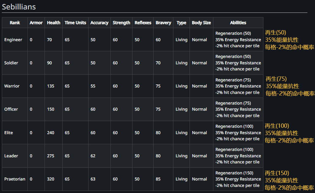 特殊能力:再生、35%能量抗性、每格-2%命中率。