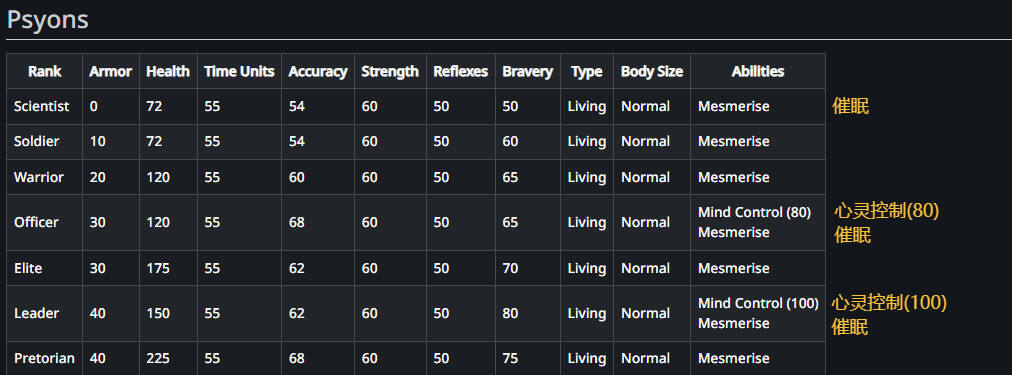 也可以通过杀死施法的异形来解除精神控制,这样受影响的异形战士会立即恢复到你的控制之下,并恢复全部时间单位。鉴于施法的灵能者通常就在附近(因为他们的精神控制需要视线),这往往是处理这种情况的最佳方法。但是,领袖和军官非常强悍,拥有高护甲,所以并非总能在一回合内将其击杀。