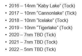 消息人士透露,2020年之后英特尔计划回归“Tick-Tock”模式,这意味着它将于2022年推出5纳米芯片。
