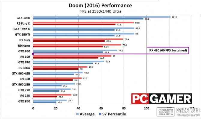 性能方面,PCGamer的爆料显示,RX 480在2K分辨率下、最高设定下,《毁灭战士》的帧率在R9 390和GTX 980之间,也就是平均60FPS左右,看来之前作为取代R9 390的说法非虚。 同时也意味着,RX 480所基于的Polaris 10核心并不高端,而是走量的“甜点级”产品,市场价位在269美元~300美元之间(1700元左右),对手是未来的GP106核心GTX 1060。 另外,VC的消息指出,Polaris 10和核心面积只有232平方毫米,至少在这一点上,这一代1Xnm给AMD和NVIDIA都带来了翻天覆地的提升。