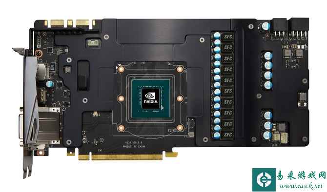 显示输出接口布局为熟悉的DVI+HDMI 2.0+DP 1.4*3,这已经成为了NVIDIA高端显卡的标准布局。同时显卡厚度控制在两层PCI插槽的范围内,不会浪费过多空间。
