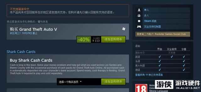 而另外一款游戏则是大名鼎鼎的《侠盗猎车手5》,这里就不对游戏再多的介绍了,毕竟也推出有一段时间。而且这也是《GTA5》不知道多少次的特价促销了。这次《GTA5》在疯狂周三同样是进行6折的折扣促销,折扣后113元的价格还是有一定的吸引力。