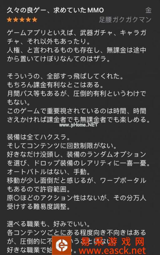 在日服appstore我们可以看到《暗黑破坏神:不朽》的评分高达4.7分(5分制),纵观五星评价,太君们纷纷表示——久违的好游戏,梦中情MMO。氪金抽卡手游抽武器、角色、礼装等对无氪不友好的内容都被抛弃,有pay to win内容,但是并不是氪佬无脑吊打无氪搬砖工。这游戏只需要时间,只要愿意投入时间甚至是无课也都可以享受到游戏的乐趣。装备全靠打,没有体力限制,想爆肝就爆肝,享受随机爆出神装的快乐。虽然动作性不如《原神》,但是《不朽》有灵活的难度调整。