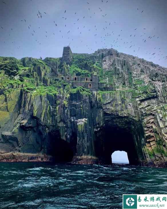 爱尔兰科克郡公牛岩绝壁上的废弃老建筑,这画风很是魔幻