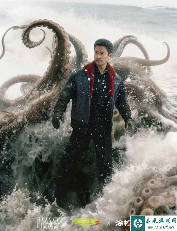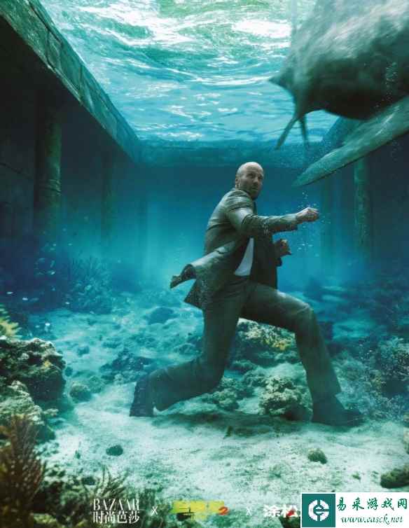 吴京、杰森斯坦森《时尚芭莎》杂志写真 巨齿鲨和猛男