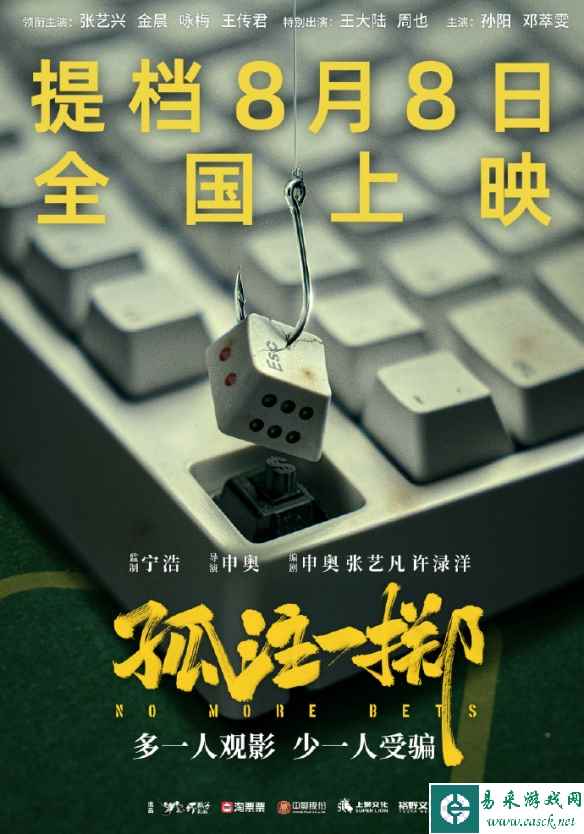 电影《孤注一掷》由宁浩监制、申奥导演,张艺兴、金晨、咏梅、王传君领衔主演,王大陆、周也特别出演,孙阳、邓萃雯主演。8月5日开始的提前点映效果很好,点映次日票房破1.793亿,超过《西游记女儿国》1.7928亿(2018年2月14日),刷新中国影史点映单日票房纪录。